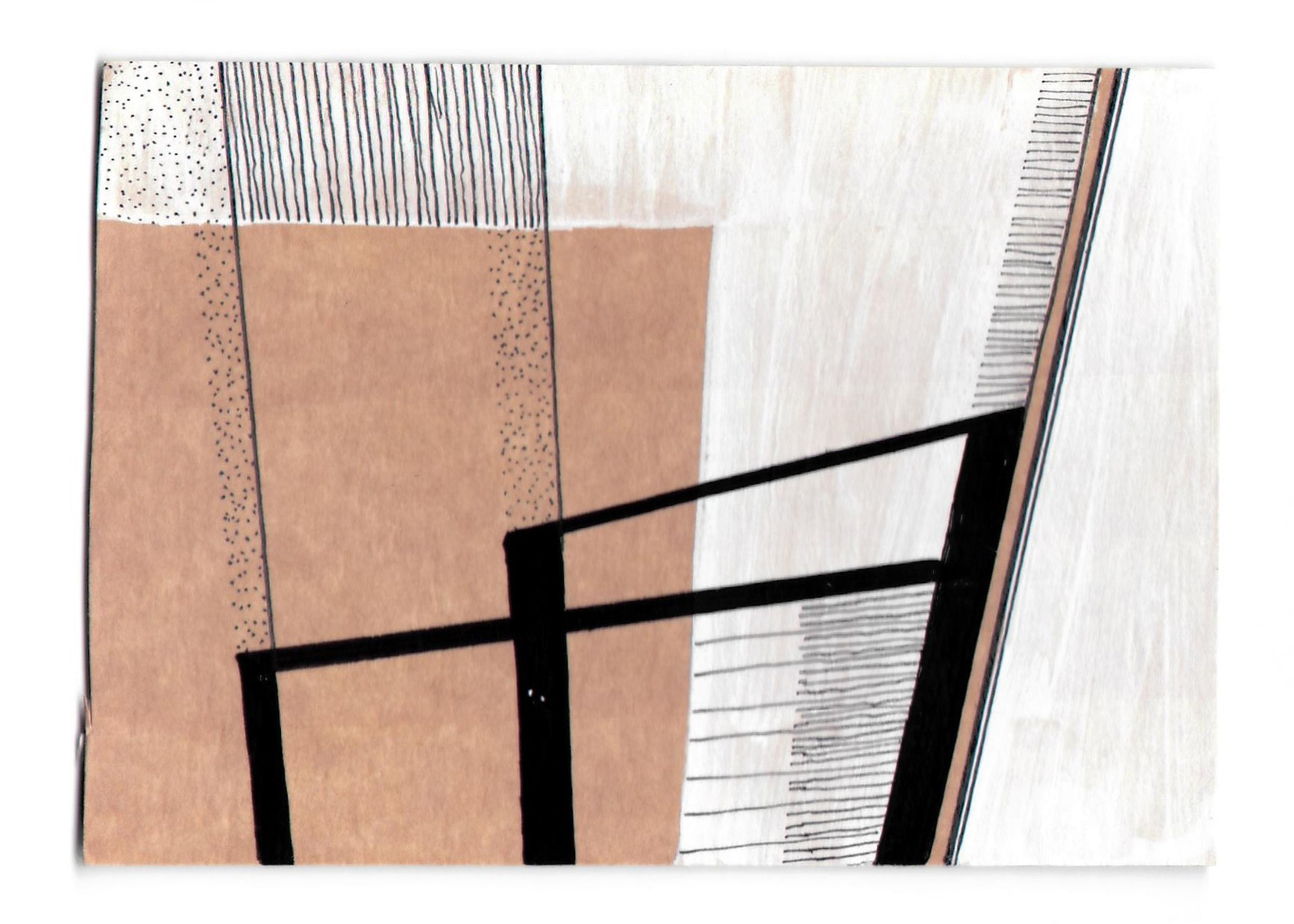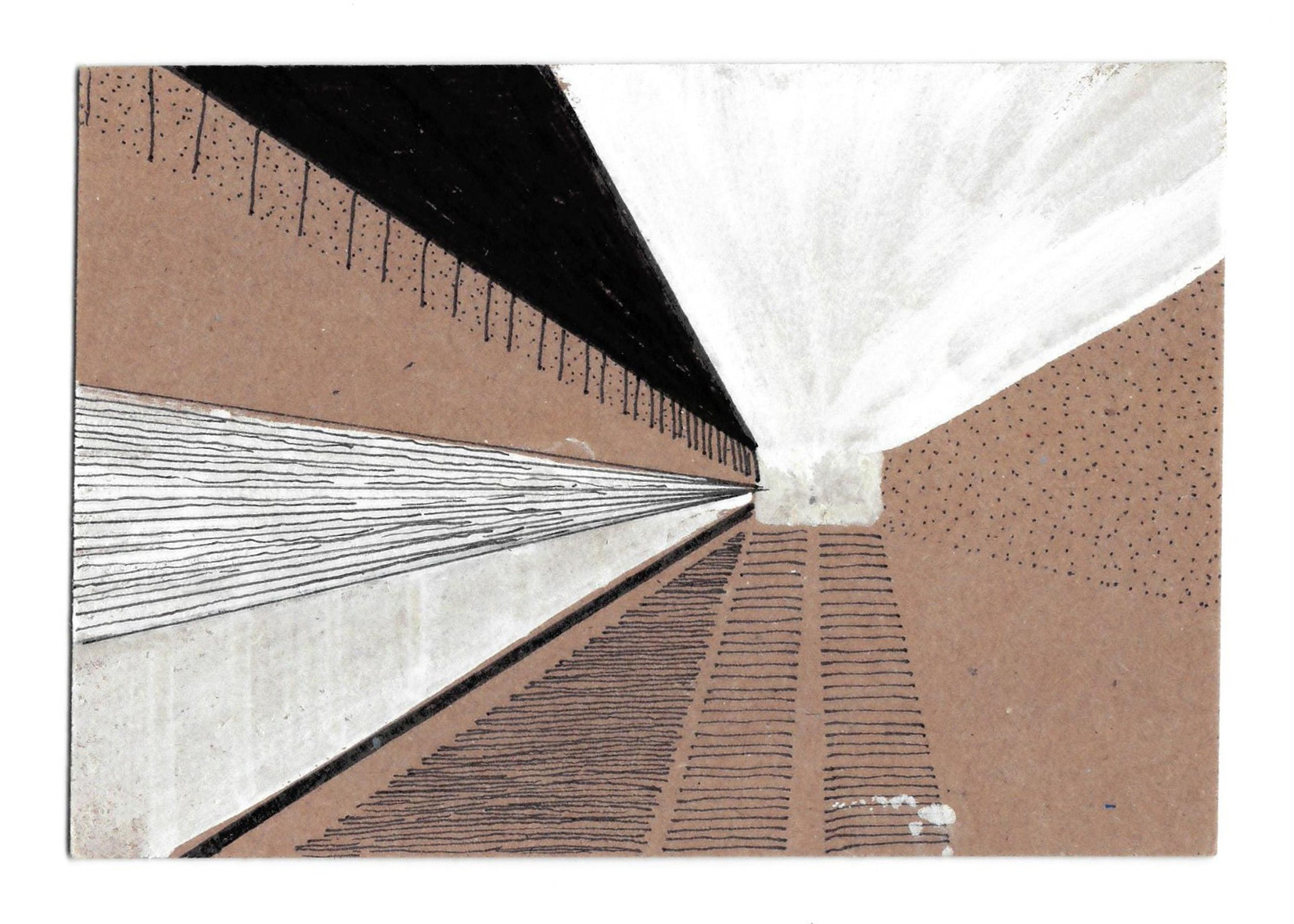 Media: Black and white paint pens and fineliner on packaging card stock